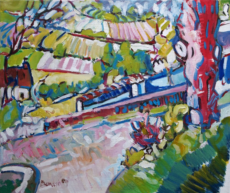Duality is the secret of true art, according to Frans Bianchi. Dualism can be translated into many aspects of a painting, such as its colours or its composition. Duality is the core of Bianchi’s work: contours and lines seem to be placed swiftly, and even though they are placed in perspective, they are not clearly determining boundaries. His lines dance on canvas, in fragile coherence. The colours connect and bind, they create the composition in all their contrasts and brightness.